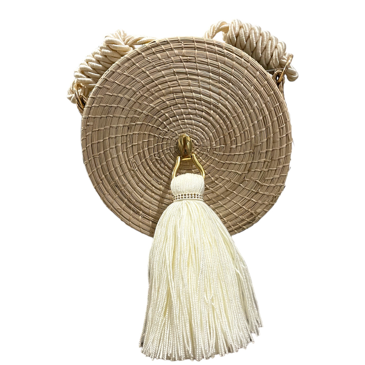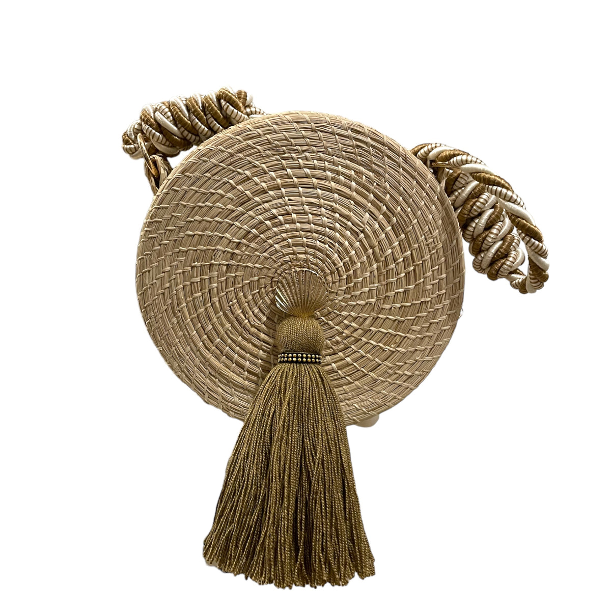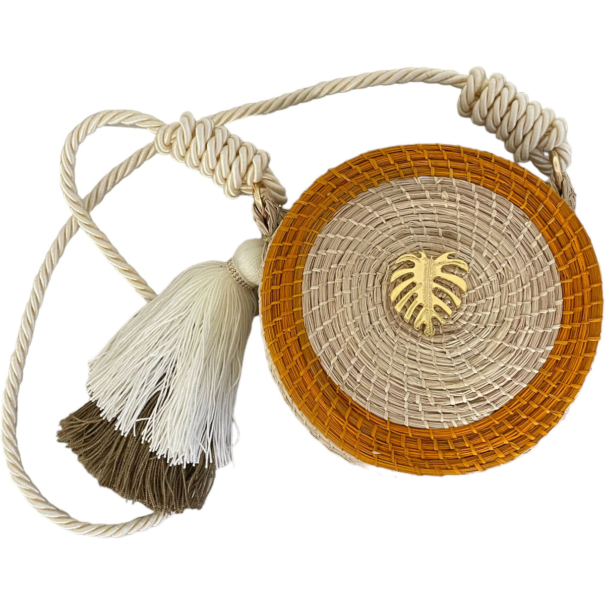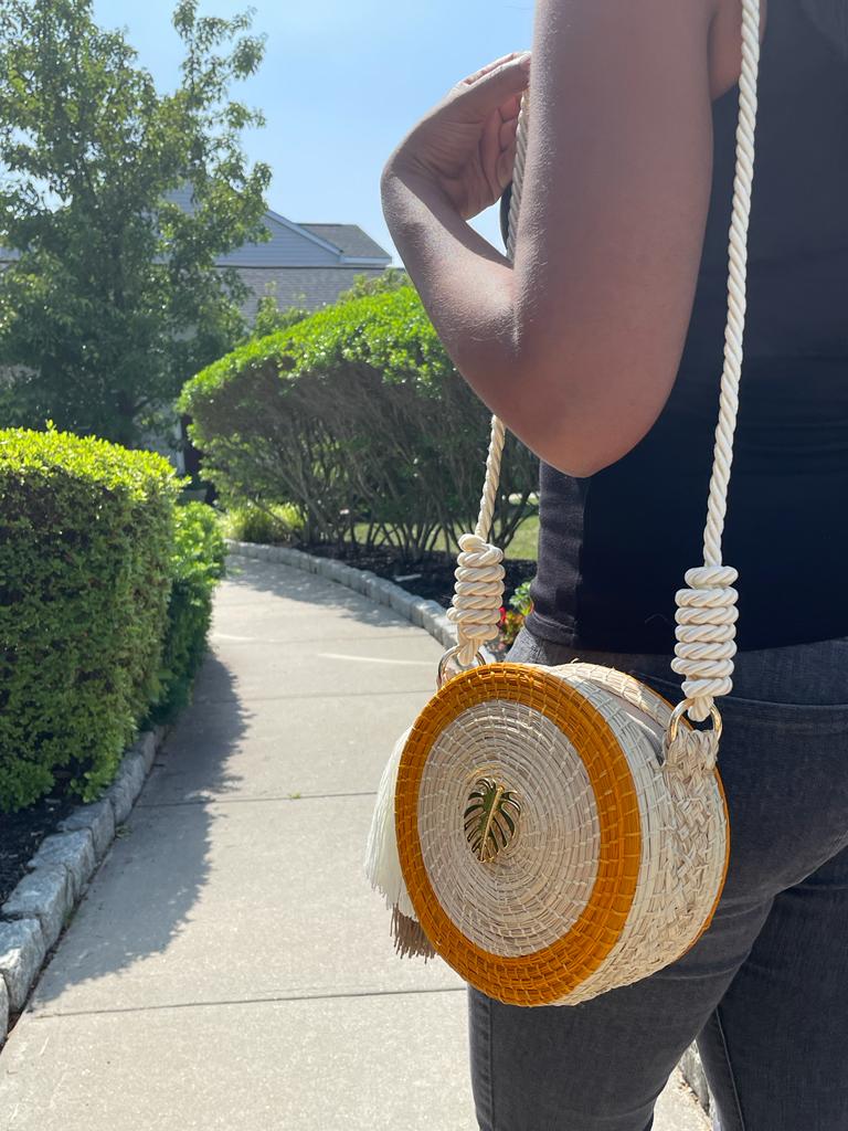 Handmade Iraca palm weaved cross-body bag.